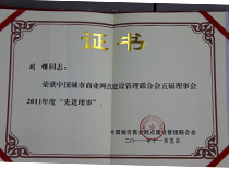 2011年集团总裁刘樱荣获中国城市商业网点建设管理联合会五届理事会2011年度先进理事称号