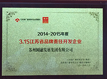 新建元新2皇冠登录发展获评“2014-2015年度3.15江苏省品牌责任开发企业"