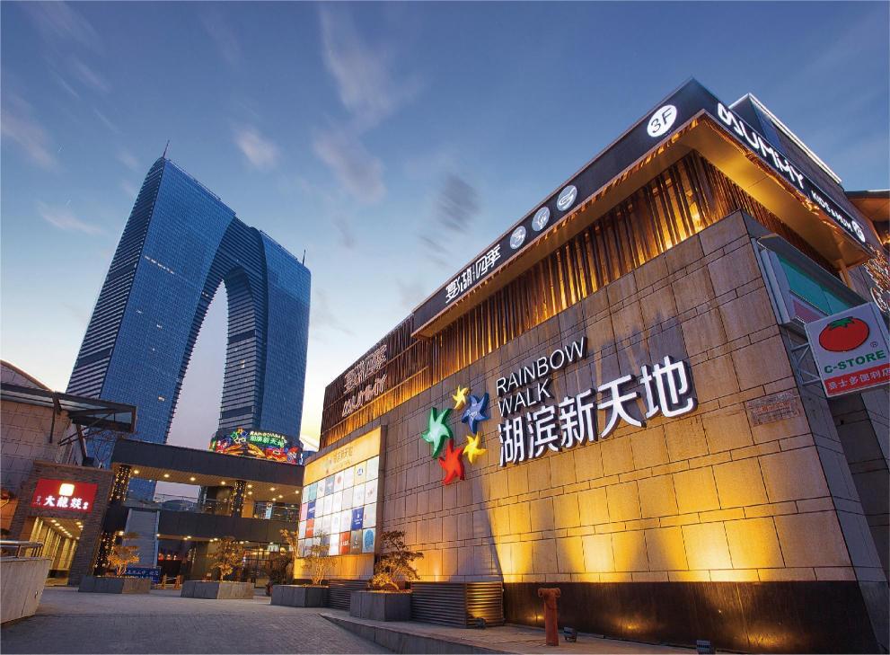 湖滨新天地位于苏州金鸡湖景区,邻靠金鸡湖音乐喷泉。建筑风格节奏明快,充满着现代的气息。引进了众多特色餐饮和高档休闲娱乐等知名品牌,为园区和苏州市民提供了一处良好的商务和休闲场所,为园区增加了一道亮丽的湖滨风景线。