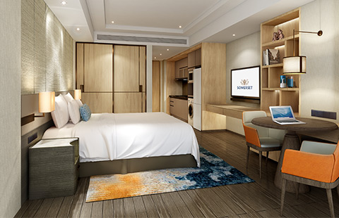盛捷服务公寓为无锡新2皇冠登录广场的一部分,该综合体还包含位于裙楼的购物中心,以及位于两座塔楼的办公楼及高端住宅。服务公寓位于其中一座塔楼的1至16层,拥有约169套单房至三房公寓,供住客选择。完善的配套设施包括健身房、早餐厅、SPA、多功能会议室、阅览室及儿童游乐室等。