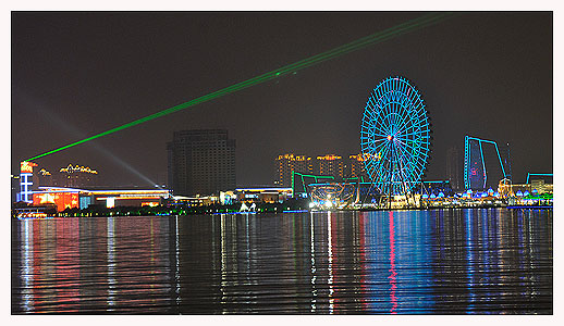 晚上7点左右,当所有的路灯以及景观灯打开,园区披上了一层靓丽的外衣,绽放属于洋苏州的独特魅力。为了庆祝祖国六十华诞,金鸡湖更是开启了水景焰火。在激昂的音乐中,喷泉随着节奏汹或高或低,伴随着轰隆的礼花声,整个湖面像笼上了一层绚丽的外衣,让在城市广场观看水景的数万人为之震撼。