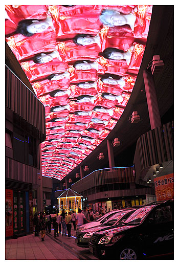 当晚,在时代广场购物休闲的大量市民聚在一起观看了国庆晚会,他们中有的逛着逛着就被播放的内容吸引住了,更有甚者,立刻停下了脚步,问边上的商家借了凳子就坐下来静静观看了。他们纷纷表示,虽然要仰着头看,脖子比较酸,但无论是在音质还是在氛围上,和在电视机上看的感受完全不同。