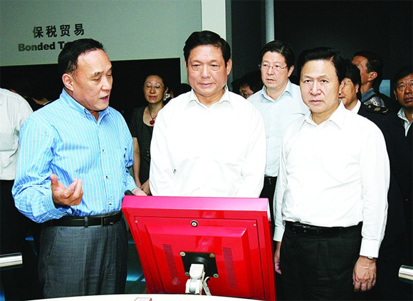 昨天,刘淇一行参观园区综合保税区。记者 徐志强 摄