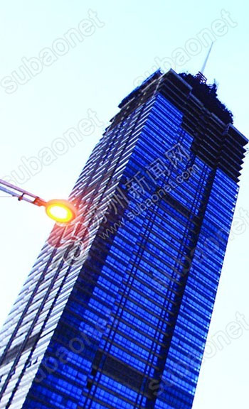 要追述园区第一座高楼的历史,着实让人有些为难。而要说园区第一座有名的高楼,目标指向却很明确。建成于1999年底的国际大厦,“身高” 88.8米。对此后越长越高的园区高楼来说,这个高度有些“拿不出手”。在十年前,无论从高度还是建筑水平上来说,国际大厦在园区都算是排得上名号。然而随着湖西CBD的逐渐繁荣,国际大厦也逐渐淹没在了楼群之中。当时光走到2007年,一座400米高楼的规划随着九龙仓集团拿下湖东地块而确定。 88米的国际大厦, 282米的环球188, 310米的新鸿基, 400米的九龙仓项目,不到10年,园区就“长高”了312米。