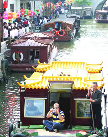在上海世博会游玩了一天半后,昨天下午,山东游客聂军夫妇特意来到苏州,来到山塘街,来感受一下姑苏千年古城独特的魅力。