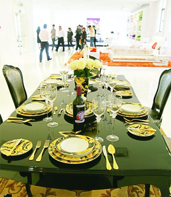 据介绍,时尚舞台总建筑面积达到15万平方米,以“品牌+折扣”为经营模式,此次进驻时尚舞台的意大利知名品牌范思哲家居用品直营店,经营面积达到1240多平方米,展厅设计风格融合了新古典主义、巴洛克和超现实主义风潮,展示包括床、沙发、餐桌、灯饰、床上用品以及瓷器等1000余种顶级家居用品。其中,一盏配以水晶装饰,采用手工制作的台灯价位达到5万余元;一套沙发价位达到50余万元。据营销人员介绍,这些家居用品尽管价格不菲,仍受到不少市民青睐。“五一”期间,除了本地市民外,上海等地的顾客也前来“淘宝”,一款10余万元的餐桌一出样就被订掉了。