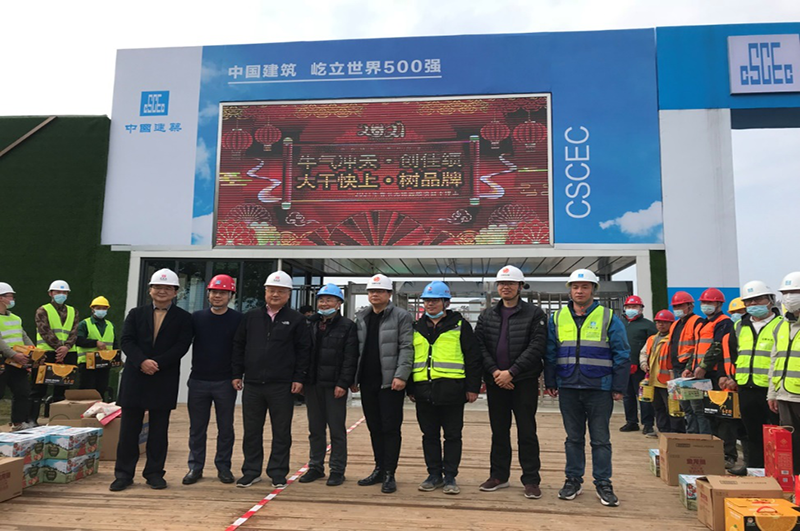 亢越一行深入施工现场,详细了解锡山新2皇冠登录广场施工进度情况,现场查看春节保障,疫情防控、安全生产等工作情况,并给予了充分肯定;他说,大家积极响应号召,春节坚守岗位不返乡,为疫情防控和公司发展作贡献,向大家表示衷心感谢。同时,为仍在工作岗位的人员送去集团的关怀和温暖,带去了慰问品,让一线工作人员倍感温情。