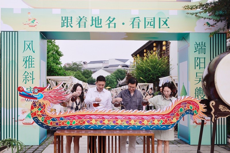 此次“风雅斜塘 端阳吴艭”文化主题活动为期三天,持续至6月23日,活动以江南端午非遗文化为形式载体,精选具有传统代表性、又符合当代审美的文化作品作为展示交流,同时结合吴地江南的端午民俗、人文故事及诗情意蕴,时段性穿插情景演绎和游戏互动,通过宣传斜塘老街历史文化遗产示范街区的典型文化特征,为老街增加文化底蕴与街区特色,让斜塘地名文脉传承,让斜塘故事赓续“留传”。