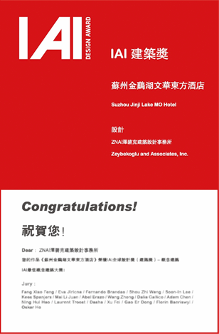 IAI设计奖(IAI Design Award),简称“IAI”,是由亚太设计师联盟(APDF)主办的权威国际赛事。其子奖项——IAI建筑奖,旨在表彰优秀建筑,并以此展现建筑精神的传承与发展,推动建筑环境提升,提高建筑设计规划的审美水平、创新精神及社会效应,同时更大程度上体现建筑和建筑师在社会、经济与文化发展中所起的作用和价值。经过不断发展和完善,IAI建筑奖现已成为颇受青睐的国际性建筑大奖,先后有Zaha Hadid(英国)、Jakob+Macfarlance(法国)、Benedetta Tagliabue(西班牙)、Haim Dotan(以色列)、Diego Guayasamin(厄瓜多尔)等国际知名建筑师和事务所的作品赢得该奖。