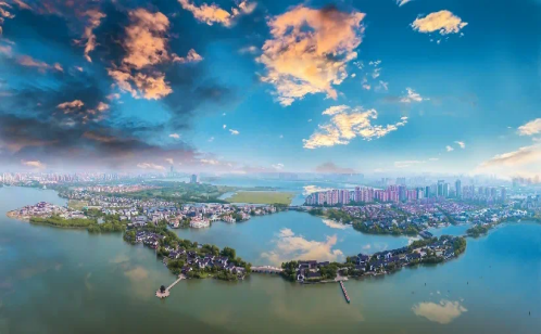 苏州七堰之一的李公堤,串联起“清廉知县李超琼筹资建堤”的历史人文典迹、“九桥三碑二亭”的桥堤文化、“粉墙黛瓦·曲栏砖雕”的江南水乡建筑与“苏州园林式水乡庭院”的湖滨公园,将风光旖旎的金鸡湖景观与韵味悠长的江南文化结合,呈现出古今交融,中西合璧的城市“双面绣”姿态。