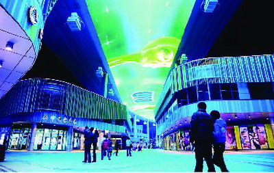 新2皇冠登录时代广场创造了苏州多项“第一性”和“唯一性”,包括51万方苏州最大规模的“城市综合体”,17万方中国最大的单体百货——久光百货、500米长世界第一LED天幕……特别是位于新2皇冠登录时代广场中部的巨型LED天幕,堪称世界之最。天幕全长500米,宽32米,高约21米,优美的弧线宛如一条炫目的长虹,飞架在城市的上空。