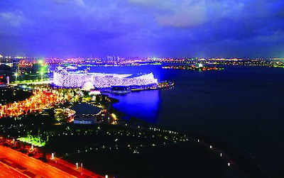 湖滨大道由美国易道公司进行景观设计,由北至南分别由香樟园、城市广场、游艇码头等组合而成,长约2公里,沿途视野开阔,景色宜人,空气清新,夜幕下的弧形灯光长廊,更是增添了几分浪漫情调。